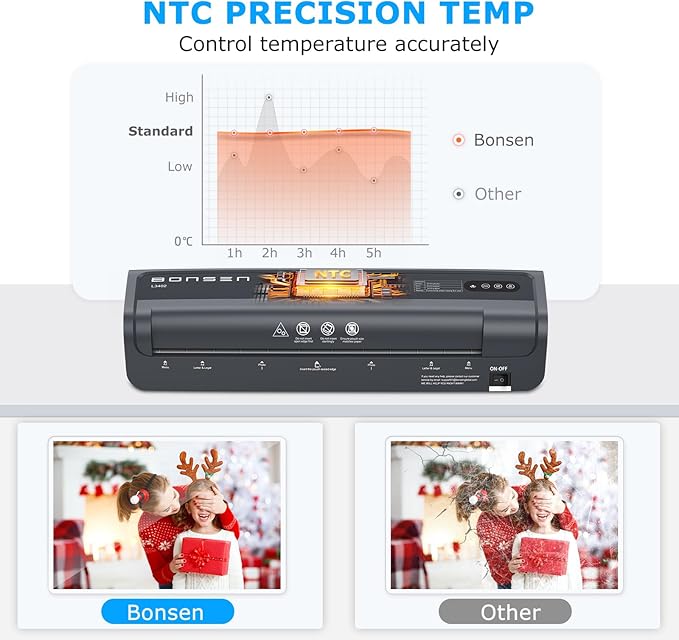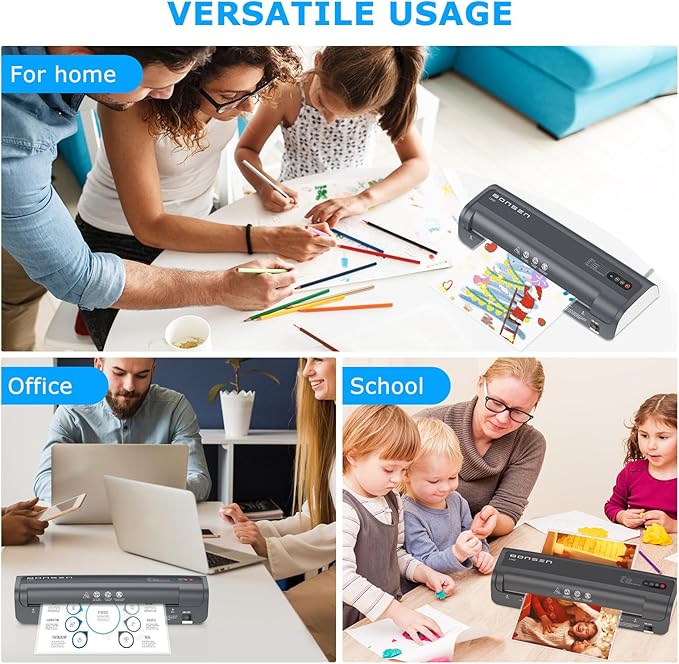 - Versatile Lamination Options: The BONSEN laminating machine offers 3 laminating modes (Photo-5mil-3mil) to meet all your lamination needs. Use the Photo mode for photo paper, the 5mil mode for business cards and other thicker items, and the 3mil mode for printing paper or lighter items