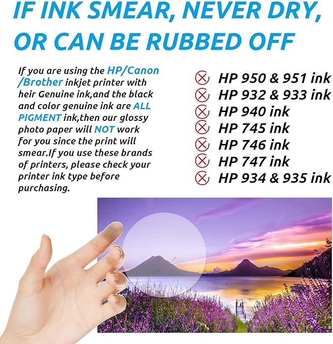 - Inkjet Printer Only: Glossy Finish, Professional Inkjet Quality Prints. Work well with dye ink.