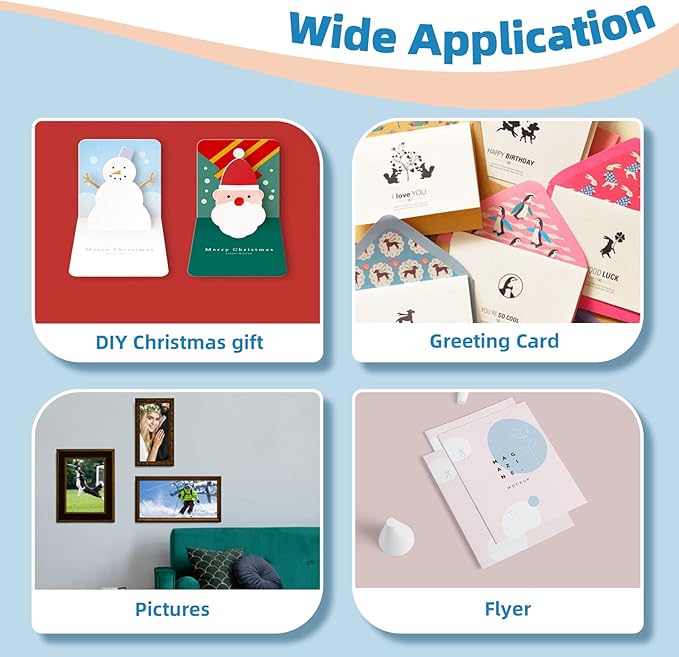 - Wide Use: Heavyweight, Thicker. The thickness of this photo paper can be used to make cards.