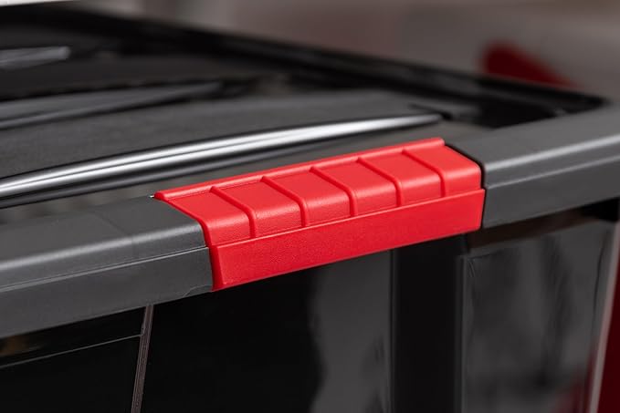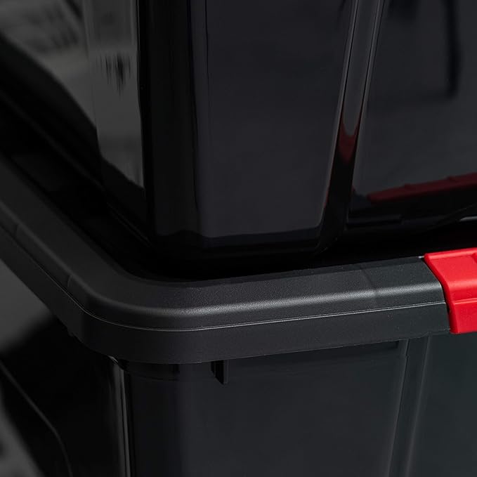 - MODERN AND STYLISH: Maximize garage space with our all-black storage bins. These bins hide your tools and gear, blending seamlessly into your workspace for a clean, modern look. Organize with style and efficiency.