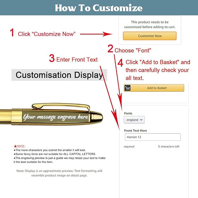 - FREE PERSONALIZATION You can have up to 50 characters (including spaces) on each line, up to 2 customized lines are free. we use laser engraving technology to engrave the text on the pen without fading. As long as you click the "Customize" option, you can easily customize it. Beautiful appearance, suitable for gift.