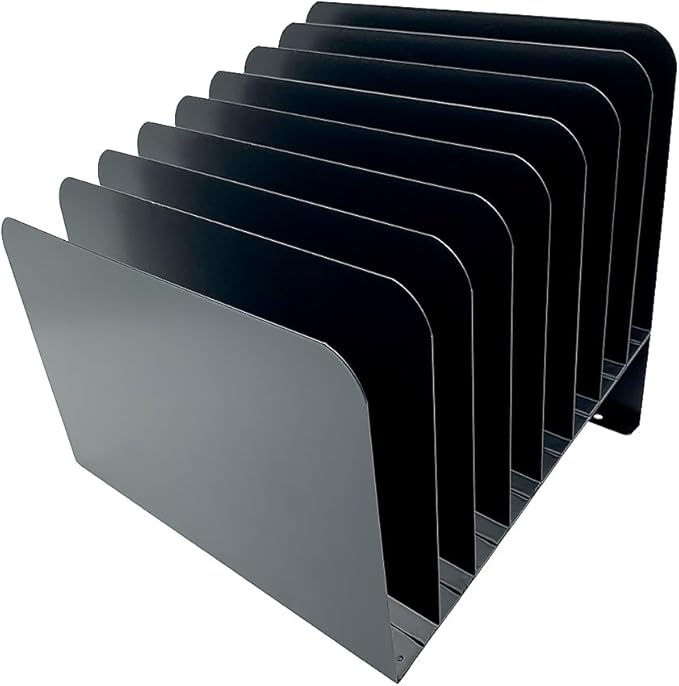 Huron Desktop File Binder Organizer Storage, Inclined Slant 8 Slot, Black Commercial Grade Steel