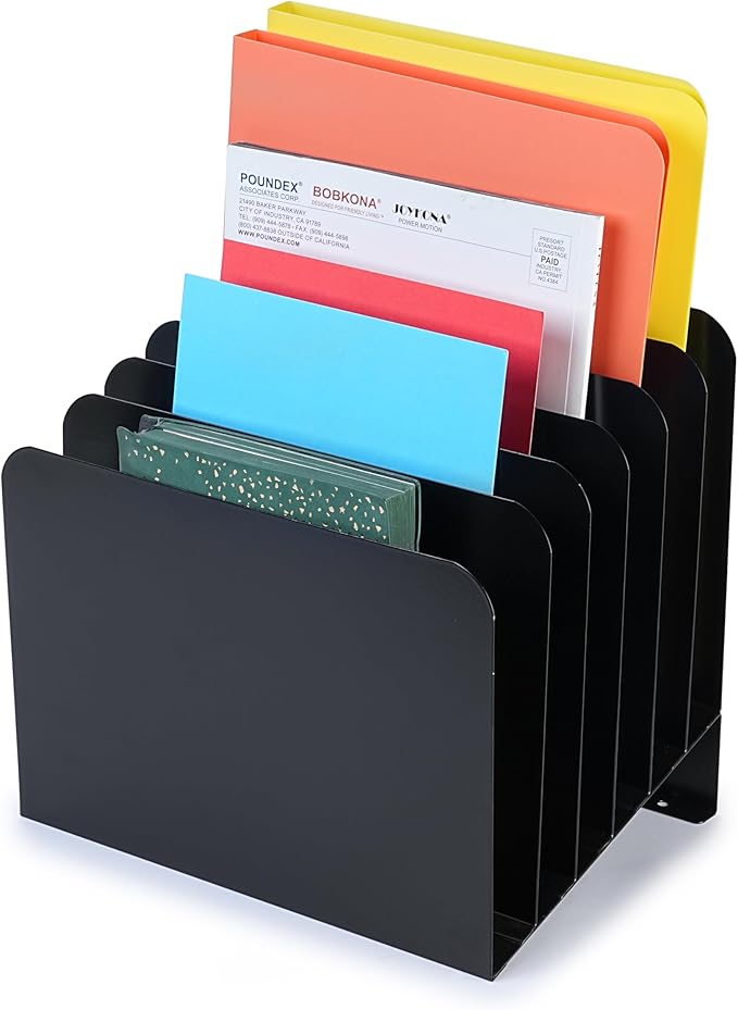 Huron Desktop File Binder Organizer Storage, Inclined Slant 6 Slot, Black Commercial Grade Steel
