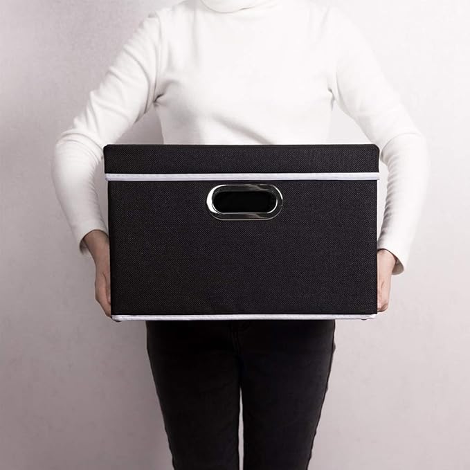 PRANDOM Foldable Storage Box with Lid [3-Pack] Fabric Collapsible Storage Bin Organizer Container Basket Cube with Cover for Home Bedroom Closet Office Nursery Black (14.9x9.8x9.8)