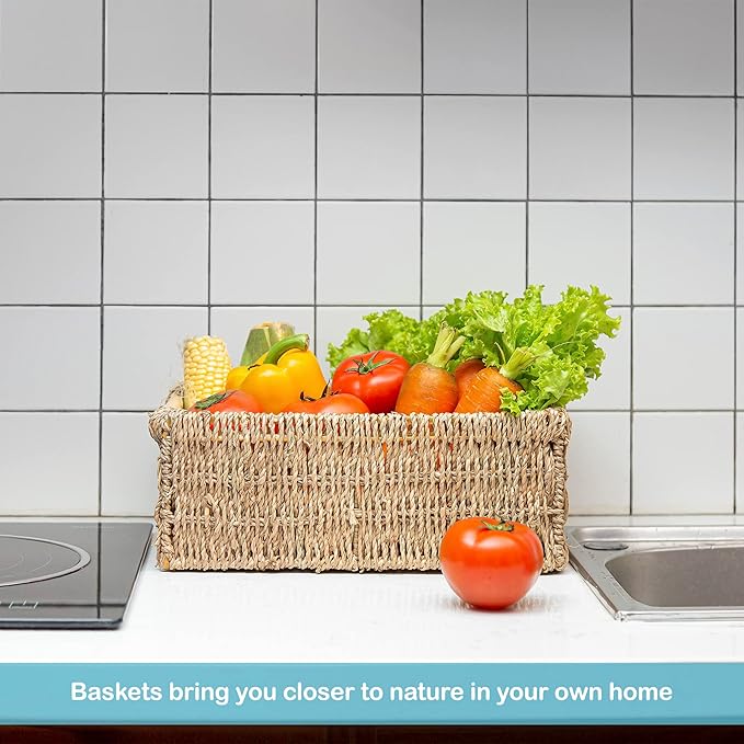 - ✅ Convenient and Attractive - Whether it be by way of pure decor, storage, or organization for kitchen, pantry, or bathroom. This natural baskets with handles suit your home in every way. The rectangular baskets wicker is great for magazines, games, pet toys, media, household items.