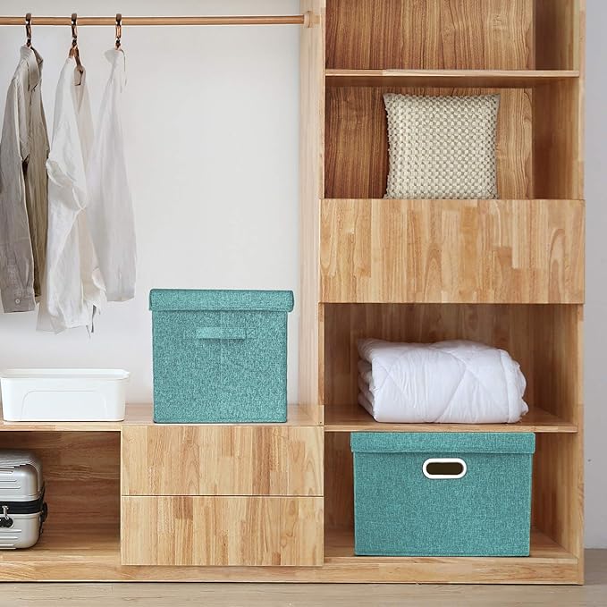 TYEERS Collapsible Storage Bins With Lids, Large Fabric Storage Boxes - 2 Pack - Aqua Deep