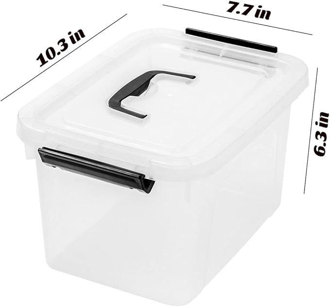 - 6 pack of clear storage latch bin with clear lid, black handle, volume 6 Qt.