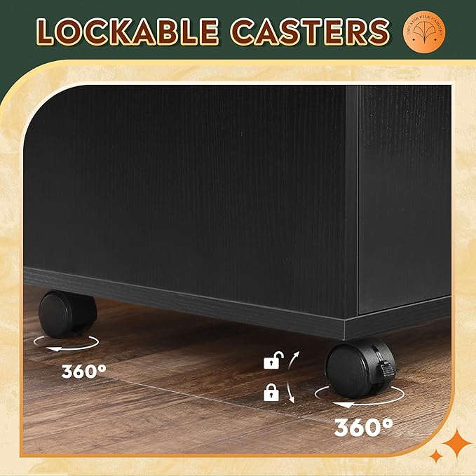- DURABLE & STABLE STRUCTURE: Made of top-grade board for long-term use, the office file cabinet is scratch-resistant and water-resistant, and can support weights up to 150lbs. Rolling on 5 wheels (including 2 lockable casters), this wood filing cabinet can keep stable with the braking function or move freely according to your need.