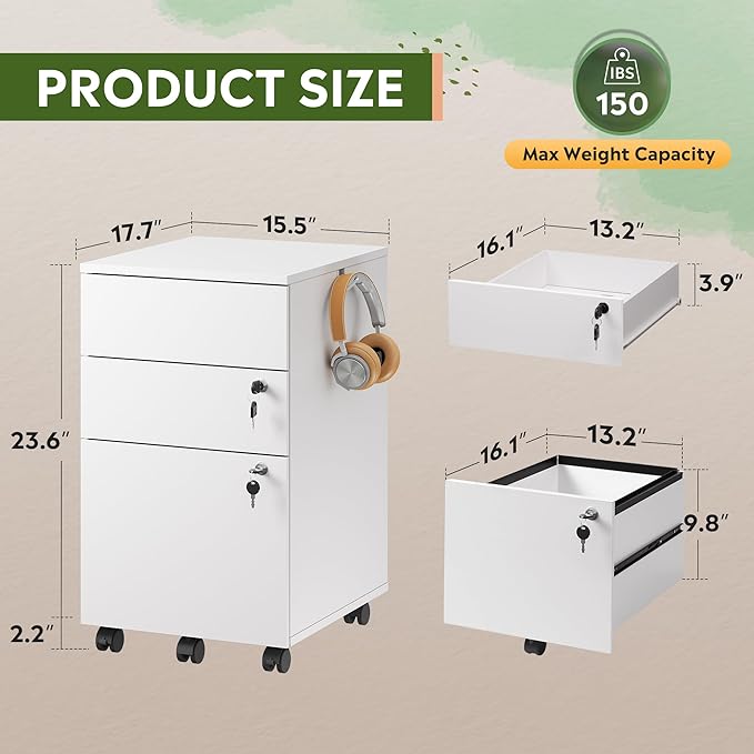 - Lockable File Cabinet: This three-drawer file cabinet is equipped with two upgraded locks, which supports locking three drawers. It is suitable for home and office use, keeping your work space organized.