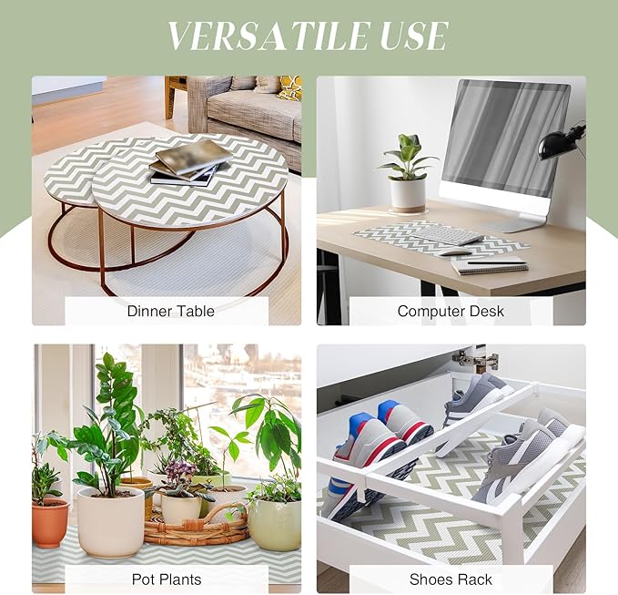 - Waterproof and Easy to Clean- These storage shelf liners are waterproof and dust-proof which keeps belongings in your kitchen cabinet, fridge and drawer organized and protected from grease and spills. The non-adhesive shelf liners are easily removable and can be cleaned with mild soap and water.