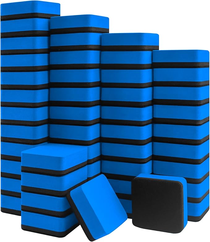 Mini Dry Erase Erasers, IHPUKIDI 48 Pack Magnetic Whiteboard Dry Erasers Chalkboard Cleaner Wiper for Kids and Classroom Teacher Supplies, Home and Office (2 x 2 Inch) Blue