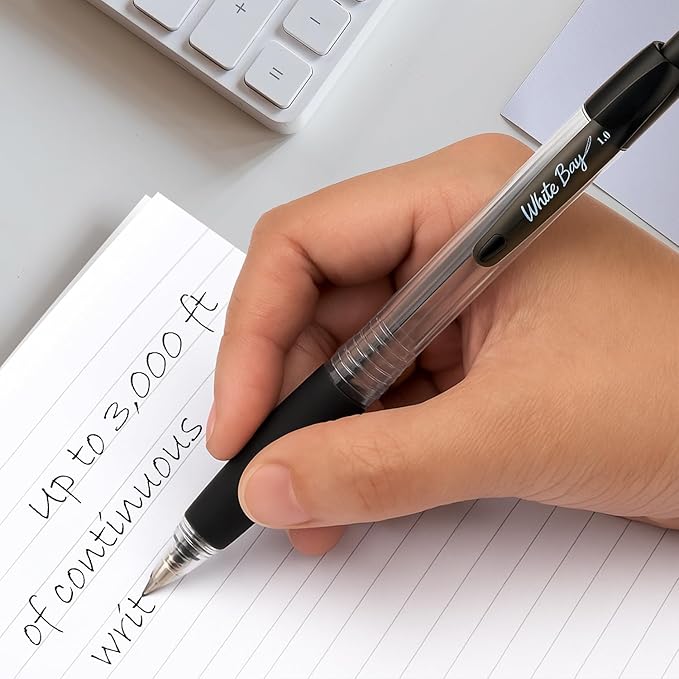 White Bay Retractable Ballpoint Pens Black Ink, Medium Point (1mm), 18-Pack