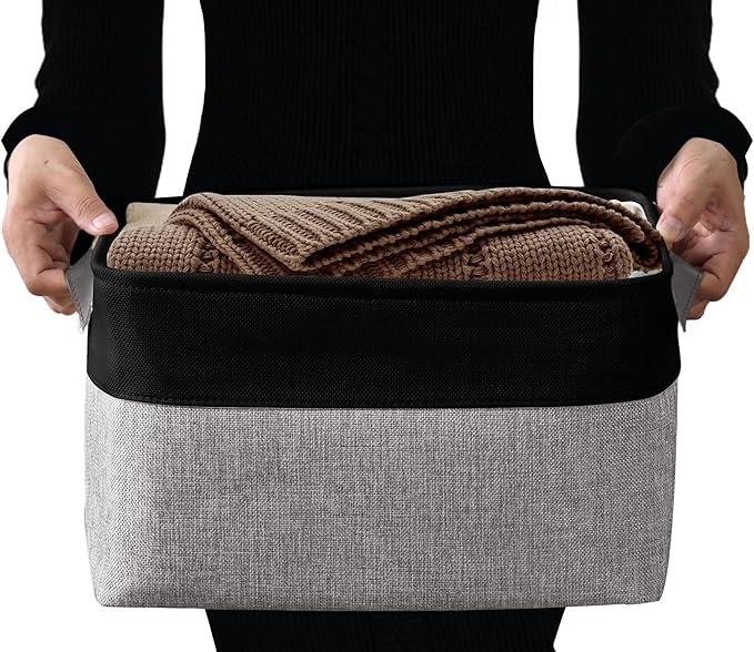 DECOMOMO Storage Baskets for Shelves - Fabric Storage Bins, Linen Closet Organizers and Storage (Grey & Black, Large - 4 Pack)