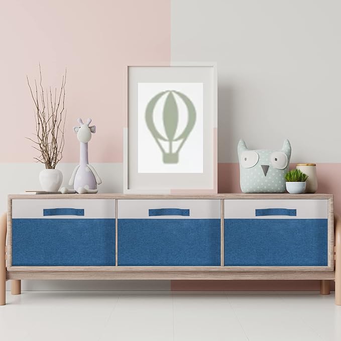 GhvyenntteS Storage Baskets for Shelves 3 Pack, Large Fabric Storage Bins with 3 Handles, Collapsible Closet Organizers and Storage, Sturdy Closet Organizer Bins/Laundry Room Organization, Blue