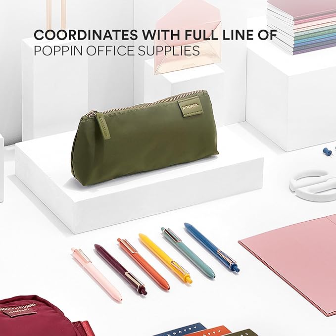 - Stylish Pens: Designed by Poppin in NYC, these popular, sleek and stylish retractable gel pens will brighten up your workspace and make writing more fun.