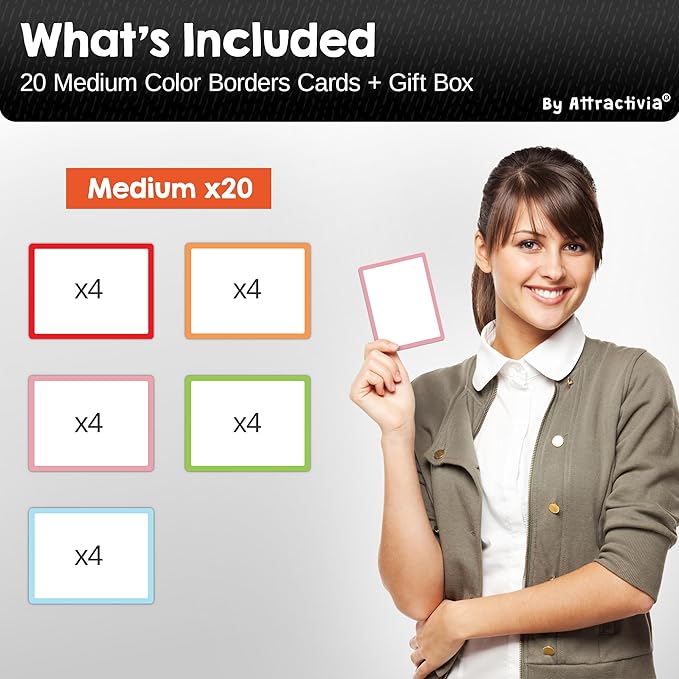 Dry Erase Magnetic Labels 3.7 x 2.8 in, Color Borders, Medium Dry Erase Magnets, 20-Pack, White Erasable Write-On All-Purpose Labels, for Office, Education, Home, Whiteboard