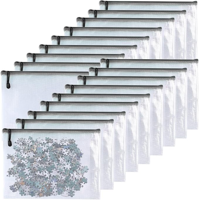 Oaimyy-18 PCS-6" x 8"-Mesh Zipper Pouch, Plastic Zip File Folders Puzzle Bags for Organizing,Office Supplies,Travel,Home Storage-Black