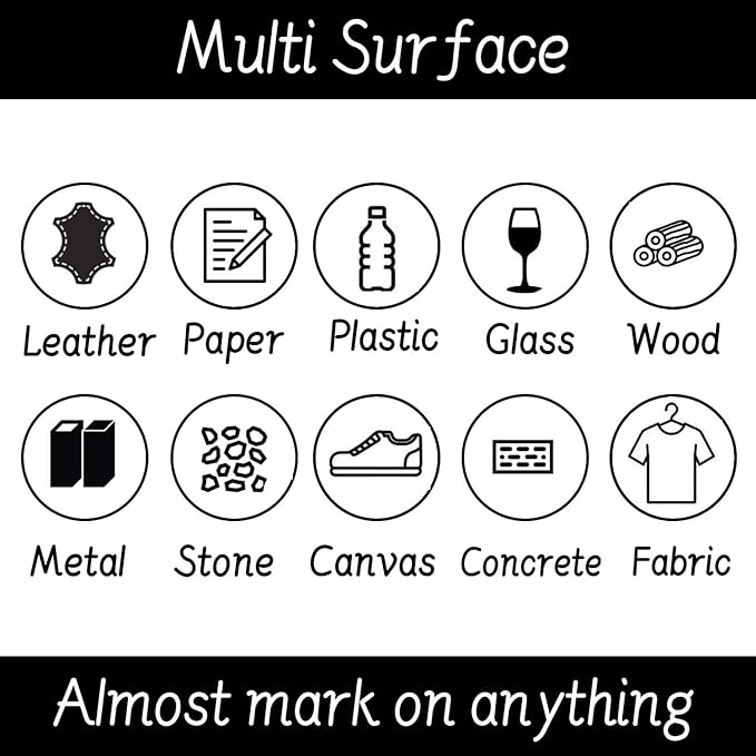 - Versatile: These permanent paint pens are great for working on different surfaces. You can use on metal, rock, ceramic, wood, leather, plastic, fabric, canvas, stone, glass, rubber, paper, art craft supplies, etc