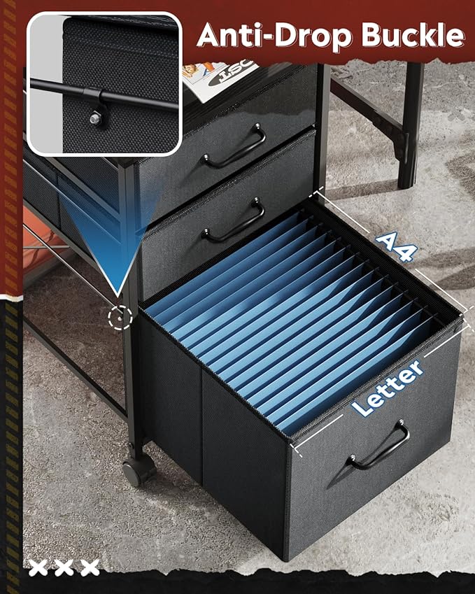 - Easy to Move: Rolling on 4 wheels, this mobile file cabinet can fix or move around your home office freely. Built-in brakes on front 2 casters to keep it in position and add stability. Unique fabric drawer design makes it only weigh 22 lbs. and light to move.