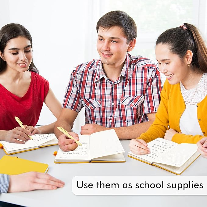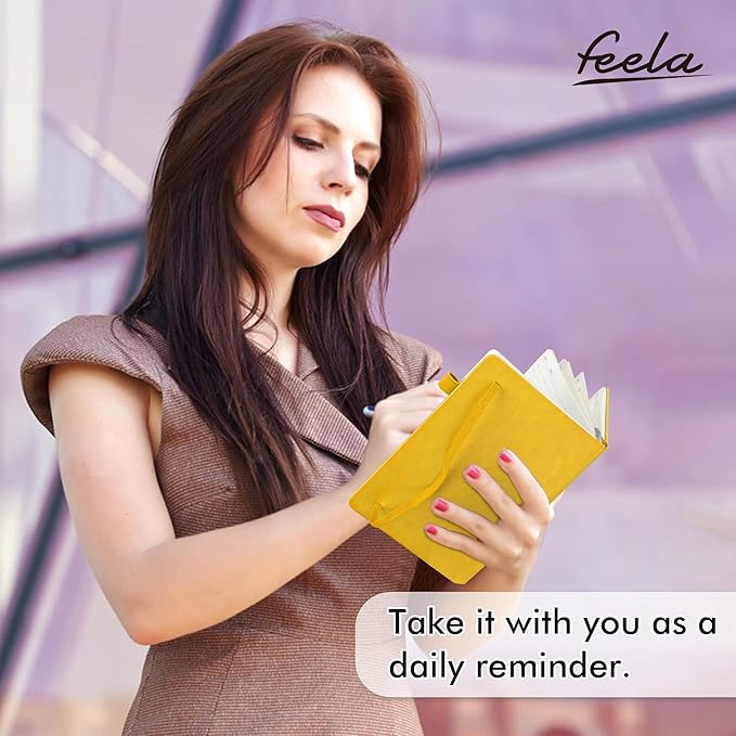feela 5 Pack Journal Notebook Bulk for School, Hardcover Business Notebooks Classic Ruled Lined Journals with Pen Holder for Work Note Taking, with 5 Black Pens, 120 GSM, 5.1”x8.3”, A5, Yellow