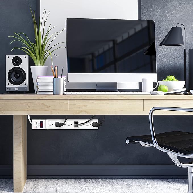 - Illuminated On/Off switch with built-in circuit breaker helps protect against power overloads. 350 J power surge protection rating is adequate for household usage.