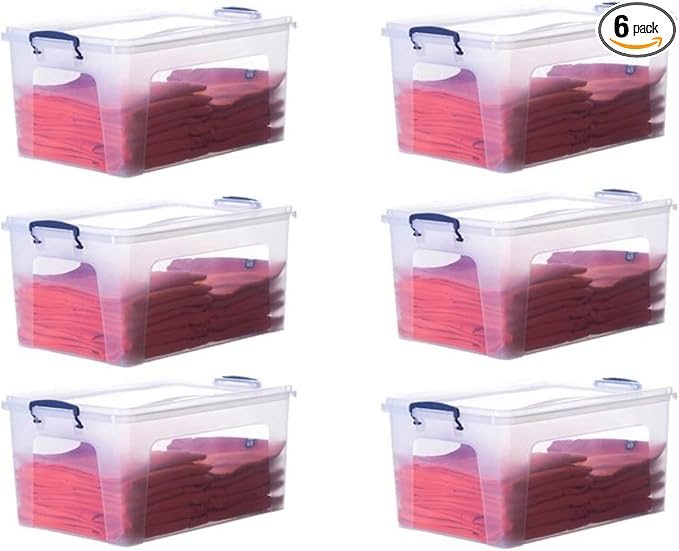 Superio Storage Bins with Lids- Clear Boxes for Organizing, Stackable Plastic Containers- BPA Free, Non-Toxic, Odor Free, Organizer for Home, Office, Dorm (6 Pack, 28.5 Qt)