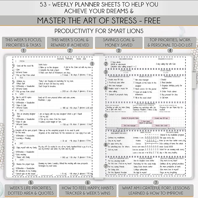 - SELF CARE PLANNER - This premium planner is undated and combines daily, weekly, and monthly planning features along with productivity, goal setting, business organization, to-do lists, notebook functionality, and gratitude journaling all in one. It includes goal-setting guidance that teaches you how to apply the law of attraction and vibration principles to become the best possible version of yourself on a mental, physical, and interpersonal level, thereby increasing productivity and happiness.