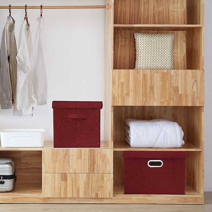 TYEERS Large Collapsible Storage Bins with Lids, Organization Bins for Closet Storage, Clothes Storage, Folding Storage Box with Lids for Home Office Storage - 3 Pack - Red Wine