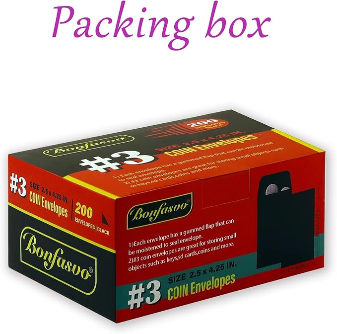 - 【Package Includes】- It contains 200 pack self-adhesive #3 Black coin envelopes, each size is 2.5''x 4.25''.