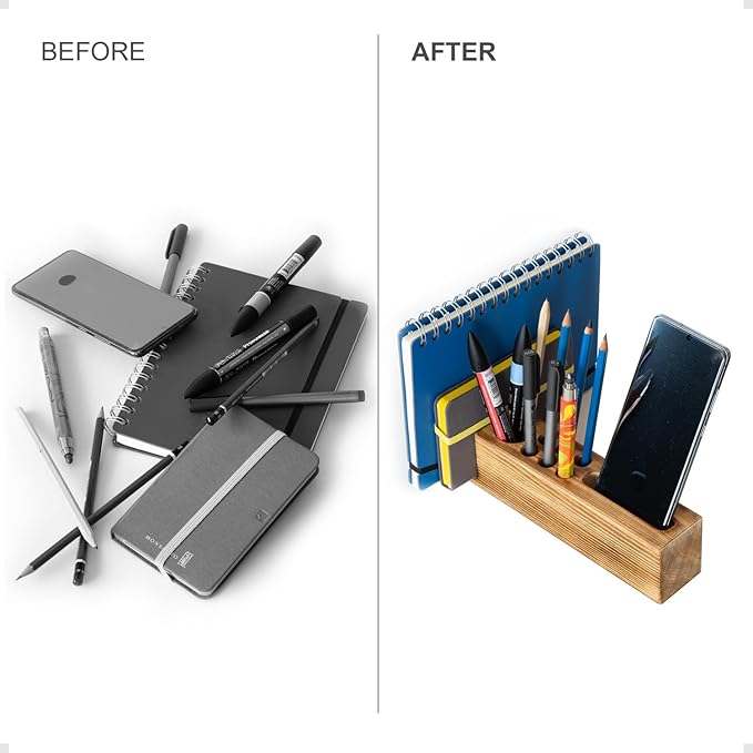 - ALL-IN-ONE DESIGN FOR MAXIMUM EFFICIENCY: Declutter your workspace with designated slots for pens, pencils, books, notebooks, and your phone. Stay organized and focused with everything neatly within reach.