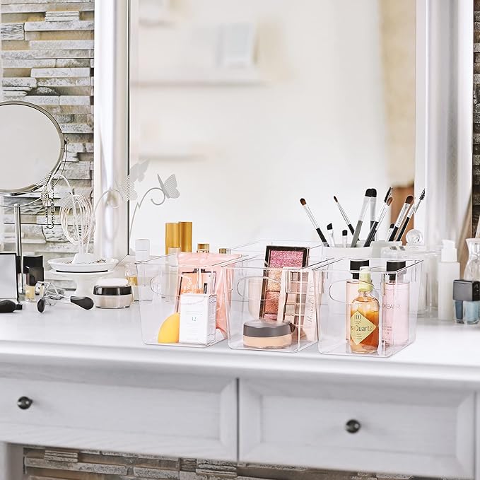 Sorbus Small Clear Plastic Storage Bins for Shelves, Clothes, with Handle - Clear Storage Bins, Drawer, Shelf, Closet, Pantry, Fridge, Freezer Organizer Bins, Closet Organizers and Storage (8 pack)