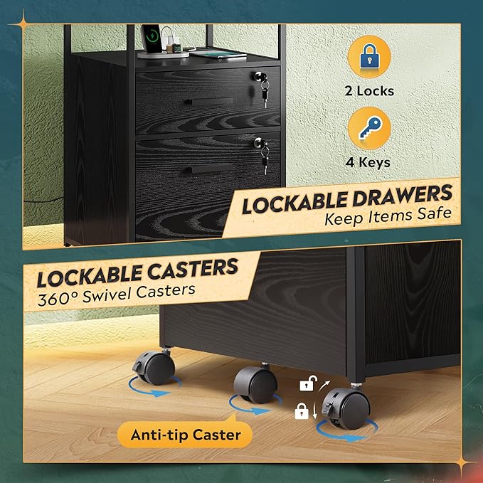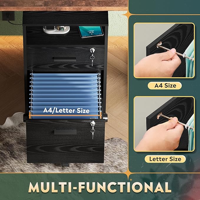- Chargeable File Cabinet: This filing cabinet is equipped with AC power outlet and USB port, you can fix it next to or under desk, which ensure that you can charge cell phone, printer and other devices while you are working, and also enhance the convenience in home office.