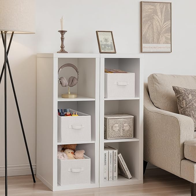 - The polyester-canvas fabric and the inserted heavy-duty boards of the storage bins allow them to support a weight of up to 25 pounds.