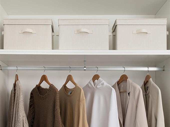StorageWorks Fabric Storage Bins with Lid, Decorative Storage Boxes for Shelves, Stackable Closet Organizer Basket with Handles, Large, Mixing of Beige, White & Ivory, 2-Pack