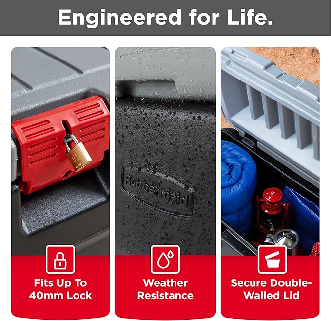 - HEAVY DUTY: Proven Rubbermaid quality heavy-duty storage bins for camping, truck storage containers and much more. These storage containers are designed to withstand harsh temperatures from 0 – 115° F