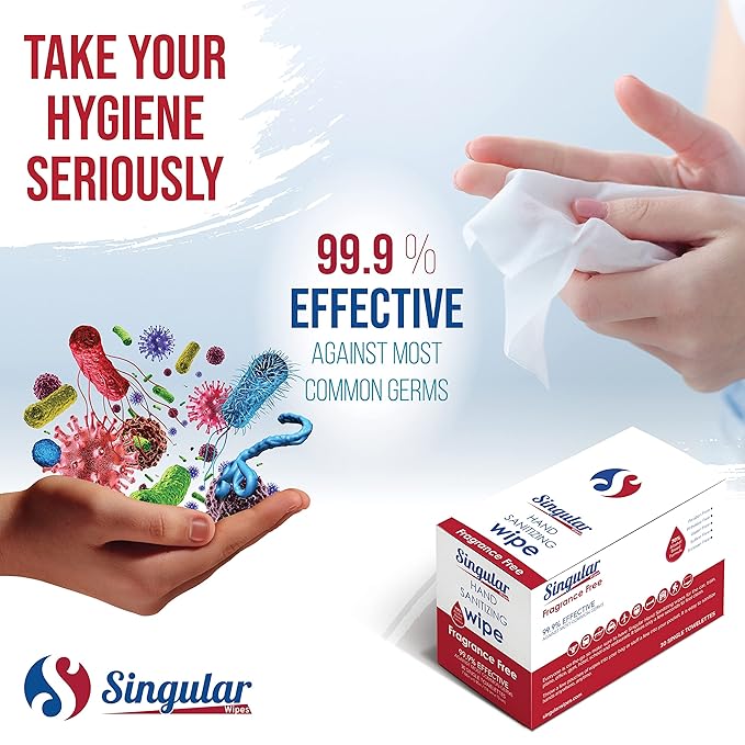 Hand Sanitizing Wipes Travel Size by Singular Wipes –30ct Individually Wrapped | Fragrance-Free, Moisturizing, 70% Isopropyl Alcohol Wipes | Travel, Home, Office, Daily Use | Made in USA