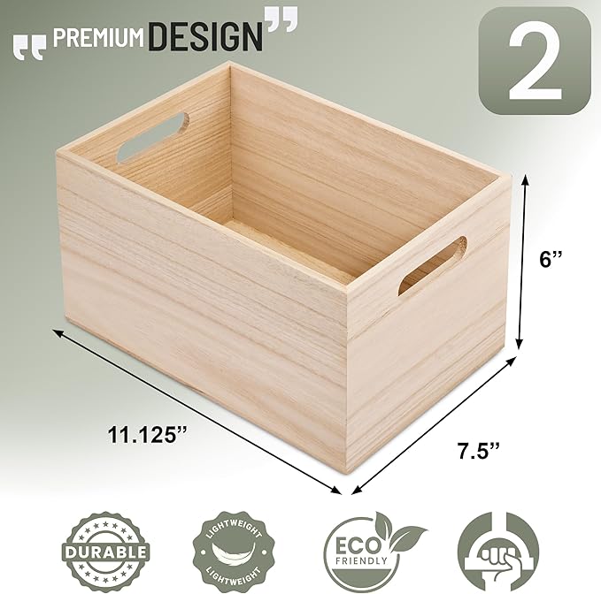 Sorbus Unfinished Wood Crates - Organizer Bins, Wooden Box for Pantry Organizer Storage, Closet, Arts & Crafts, Cabinet Organizers, Containers for Organizing (2 Pack)