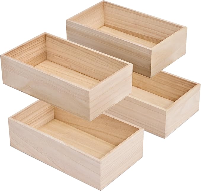 Sorbus Unfinished Wood Crates - Organizer Bins, Wooden Box for Pantry, Closet, Arts & Crafts, Cabinet Organizers, Containers (4 Pack)
