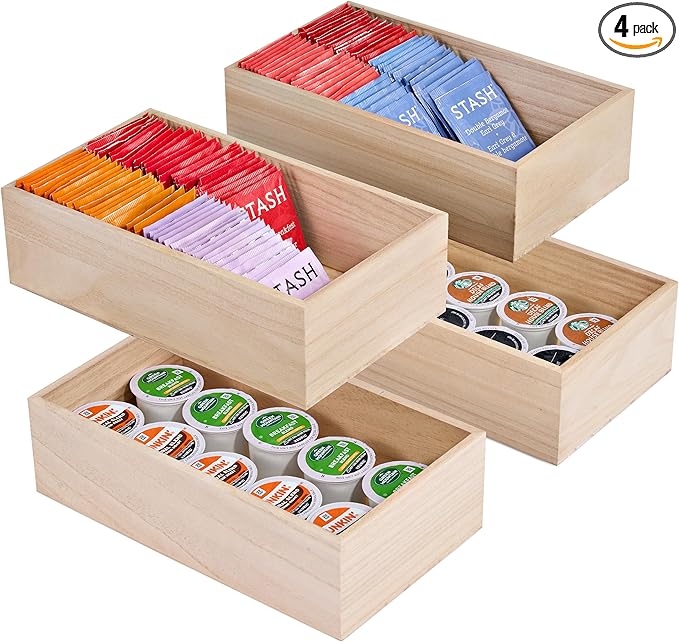- WOODEN STORAGE BINS (4-PACK) — Provides modern storage for household essentials with a natural look — Pairs nicely with similar styles in the Sorbus Wood Bin Collection (sold separately)