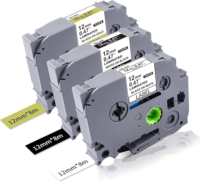 - Package: 3-pack Lonitul label maker tape 12mm 0.47 laminated compatible with Brother Ptouch label tape 12mm, 1/2 Inch x 26.2 Feet(12mm x 8m) of each Tz tape.