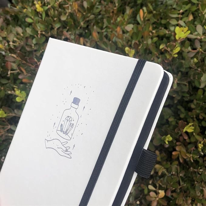 BUKE Dotted Journal A5 Hardcover Notebook- 160 Dot Grid Pages 150g Black Paper - Black PU Leather Hardcover 5.75" x 8.5" and Gift Box Mystery Bottles (BKB-2)