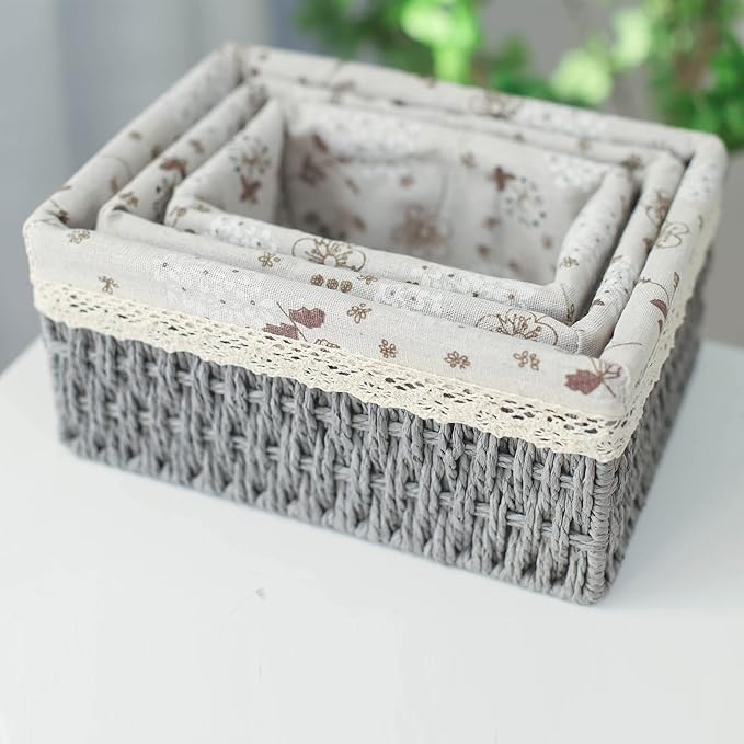 - [Suitable Dimension]Set of 3, 3 different size of these baskets.Big:10.24”*7.87”*4.72” inches, Middle:8.66"*6.3*3.94" inches, Small:7.08"*4.72*3.15"inches