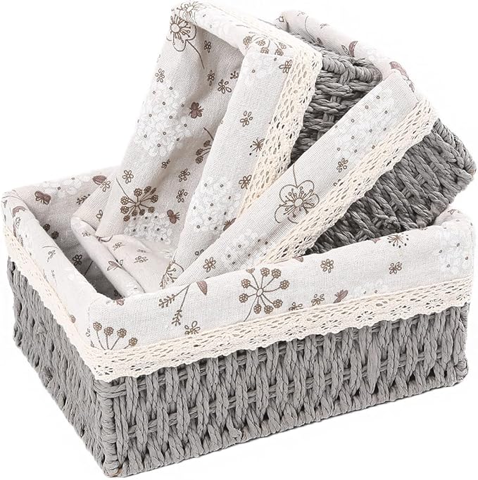 YRMT Macrame Storage Baskets Set of 3 Boho Decor Baskets for Organizing Decorative Paper Rope Woven Storage Basket with Liner Rectangular Empty Gift Basket Countertop Shelves Organizer