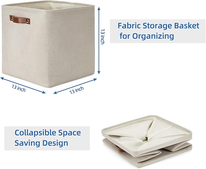 Temary Cube Storage Baskets 13 Inch Cube Storage Bins 4 Pack Baskets for Organizing Shelves Fabric Cloth Bins for Shelf, Home, Closet(Beige)