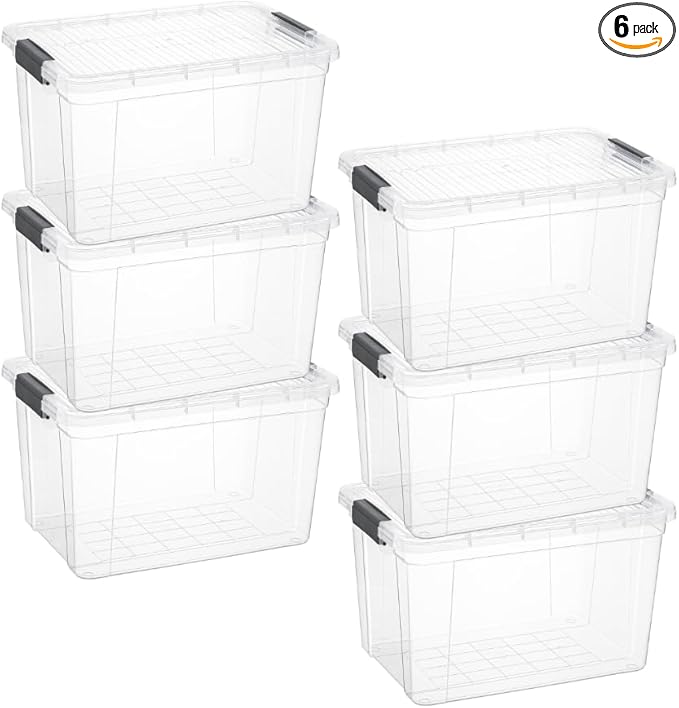 Superio Storage Bins with Lids- Clear Boxes for Organizing, Stackable Plastic Containers- BPA Free, Non-Toxic, Odor Free, Organizer for Home, Office, Dorm (6 Pack, 14.25 Qt)