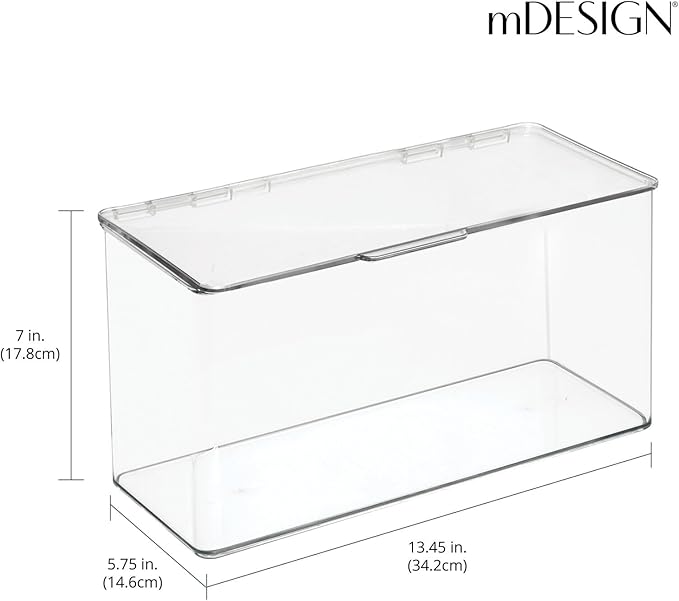 - STACKABLE: hinged lids open easily so grabbing what you need is quick and easy; Clear view so you can easily find what you're looking for without opening the containers; Create vertical storage to maximize space; Use them individually or together to create a custom storage system that works for you; Keep items contained, tidy and dust free
