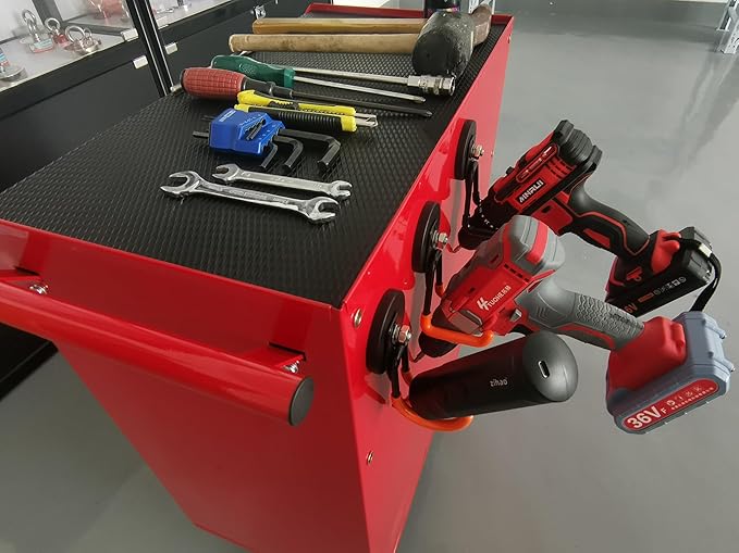 - Utility Hooks for Garage: These heavy-duty magnetic hooks support up to 20lbs, ideal for hanging items like cordless impact drivers, tool boxes, garden shovels, or trailer cords. The strong magnets provide secure holding without any drilling.