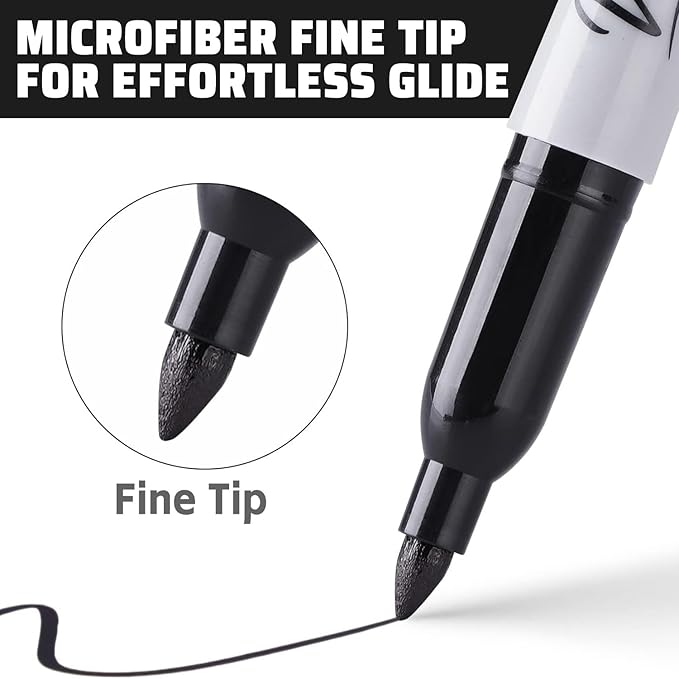 Permanent Markers Bulk, 75 Pack Black Fine Tip Permanent Marker Set - Waterproof | Quick Drying | Fade Resistant - Marks on Paper, Glass, Ceramic, Plastic, Wood, Rock, Metal