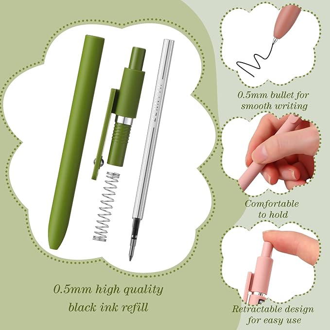 - Retractable and Clip Design: the pens fine point smooth writing pens adopts retractable design, which is convenient for writing and storage; There is clip design at the top, which can be clipped on the book and notebook, easy to carry; The nib is sealed with wax to avoid the ink from drying out during transportation
