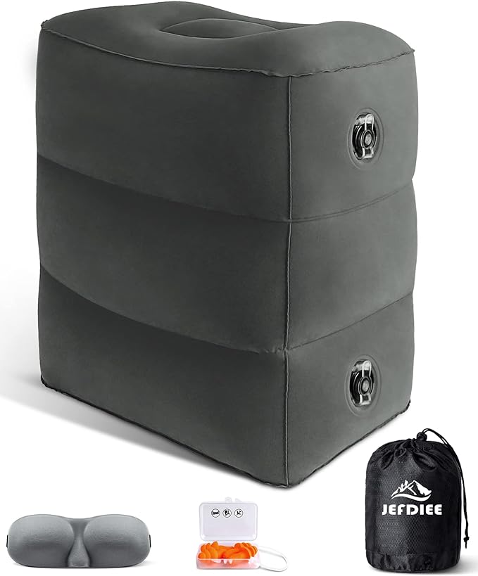 JefDiee Inflatable Travel Foot Rest Pillow, Kids Airplane Bed, Adjustable 3 Layers Height Leg Rest Pillow, Adults Travel Essentials Great for Airplane, Office, Home, Trains, Cars (Dark Grey)